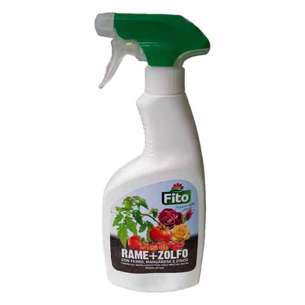 Integratore pronto all'uso a base di rame ossicloruro e zolfo, con ferro e manganese. Previene e cura le carenze che si manifestano con il disseccamento e ingiallimento fogliare, macchie brune, necrosi. Ideale per trattare piante da fiore, piante verdi e da orto.